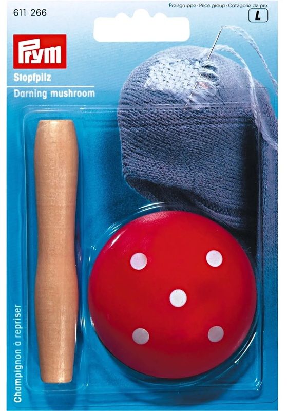 Den klassischen Stopfpilz bietet Prym im Design eines Fliegenpilzes an. Mit ihm ist auch das Stopfen größerer Löcher kein Problem mehr. Gerade auf hochwertige Kleidung oder liebevoll selbstgestrickte Socken, Schals oder Mützen möchte man nicht gerne verzichten, wenn eine Stelle mal verschlissen ist. Mit dem farblich richtig abgestimmten Stopfgarn, der passenden Stopfnadel und dem Stopfpilz aus Holz steht der Reparatur der geliebten Kleidungsstücke nichts mehr im Wege. Der handliche aufsteckbare Stil des Pilzes dient als ergonomischer Griff und ermöglicht so ein müheloses Arbeiten.