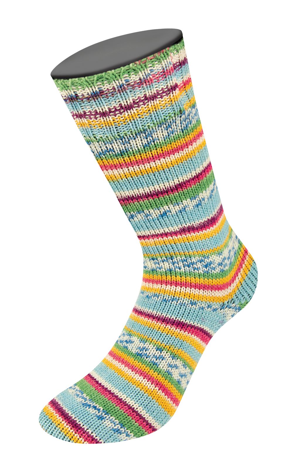 6-fädiges Sockengarn aus Merinowolle in verschiedenen Mustern und jeweils unterschiedlichen Farben