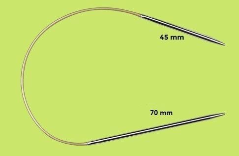 Diese 25 cm lange Rundstricknadel hat an ihrem original addi-Goldseil zwei unterschiedlich lange Nadelspitzen aus Messing, weißbronze* beschichtet.