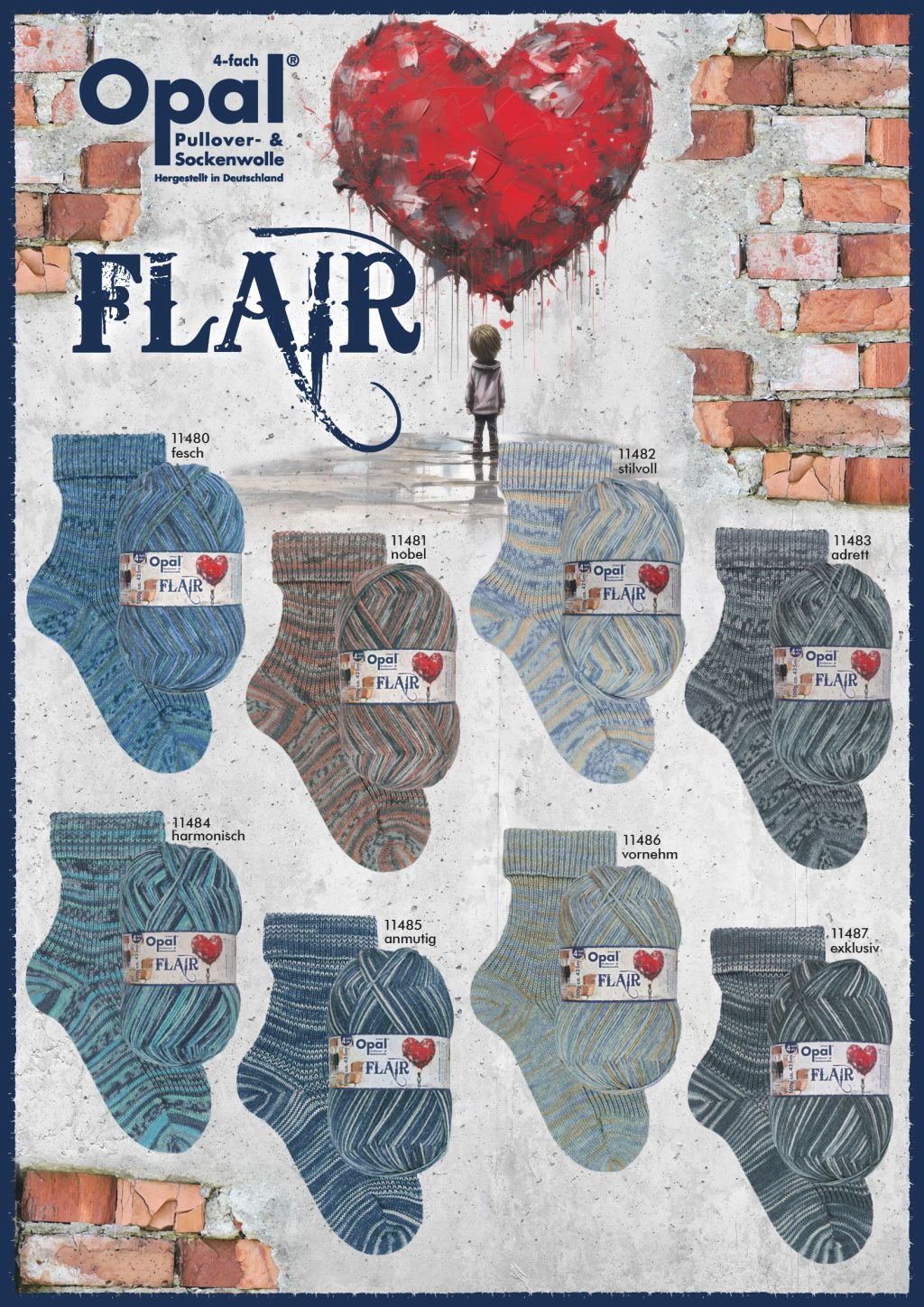 Opal Flair besticht durch einen kurzen Rapport und harmonisch gedeckte Farben. Verstricken Sie Ihr eigenes Flair in Ihr neues Lieblingskleidungsstück.