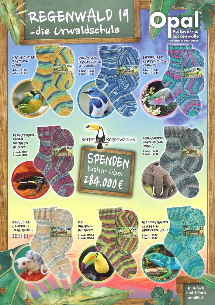 Strumpfwolle made in Germany - je ein 150g Knäuel aus dem OPAL Sortiment "Regenwald - die Urwaldschule" = 8 x 150g (= 11,75 €/150g) Grundpreis 1 kg = 78,33 €