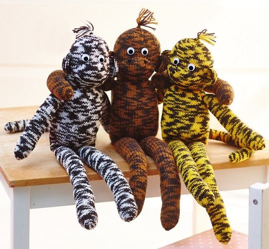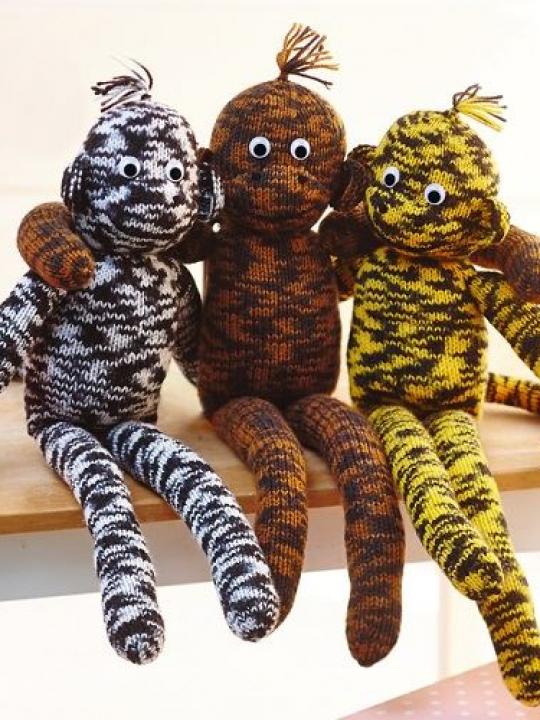 - Ein Knäuel ergibt ein "Sock-Monkey"-Projekt. (Gratis-Anleitung in der Banderole)