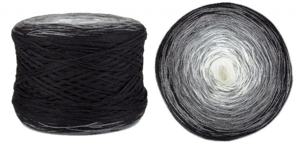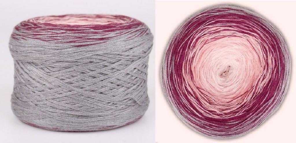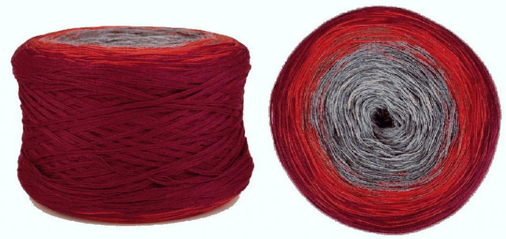 Das 4-fädig gefachte Garn wechselt stets in gleichmäßigen Abständen die Farbe immer nur an einem einzelnen Faden, bis an alle 4 Fäden der Farbwechsel vollzogen ist. Dadurch erhält das Werkstück einen fast übergangslosen Farbverlauf.